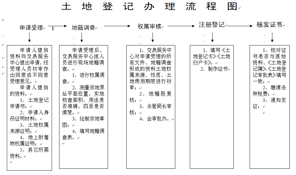 办理程序 申请受理——地籍调查——权属审核——注册登记——核发证书