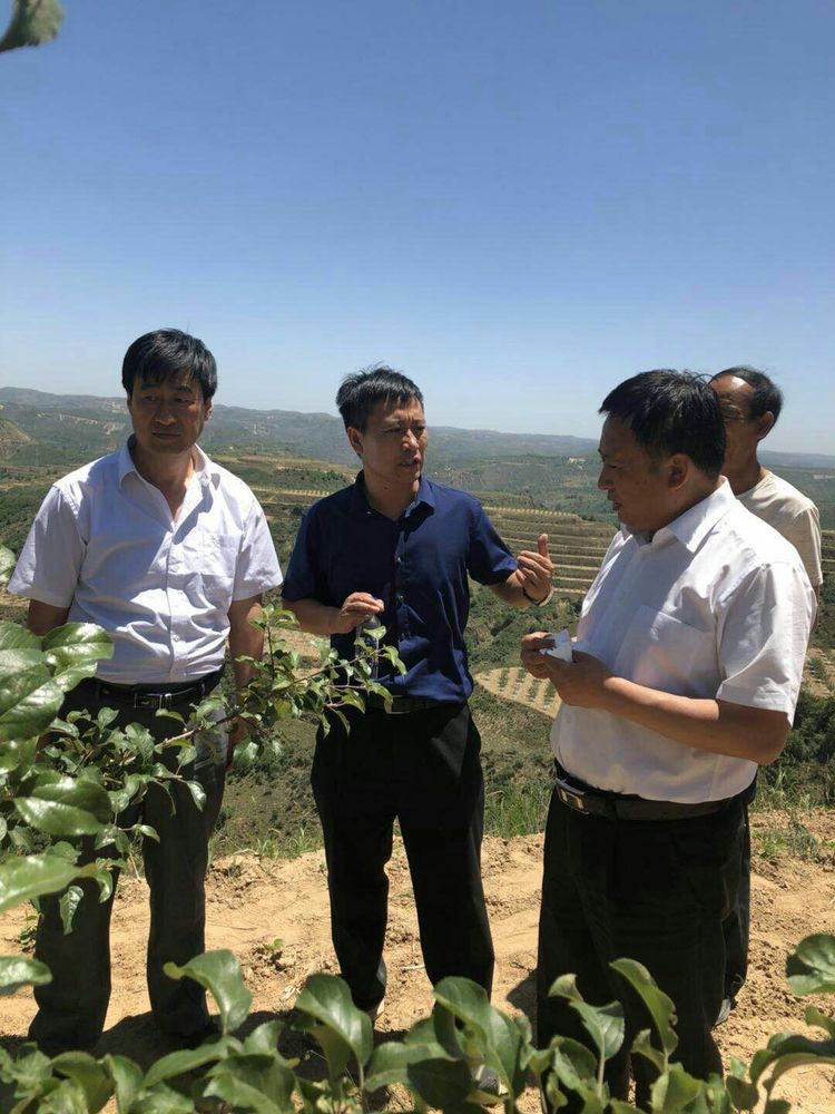 6月13日,延安市果业局局长路树国在县委常委、副县长刘建忠、县果业局局长牛怀荣和便民服务中心总支书记曹元崔的陪同下,先后实地查看了纸坊便民服务中心高梁村湫滩沟果园和米岭山村王三台果园。